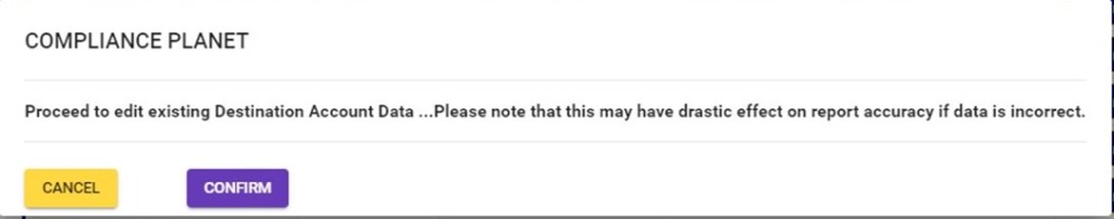 - A notification will be displayed at the top of the page when edited destination account data is saved successfully. See Fig 33.2v below