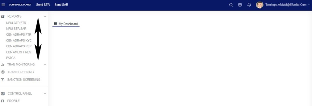 - This will display a drop down . The dropdown lists the report types available on the compliance planet software.