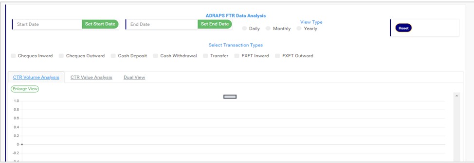 Here, the software can generate graphs with the value and/or volume of transactions plotted against the time or period in which they occur. To get the planet to give you an analysis of any ADRAPS FTR type over a period of time, here is how to go about it.