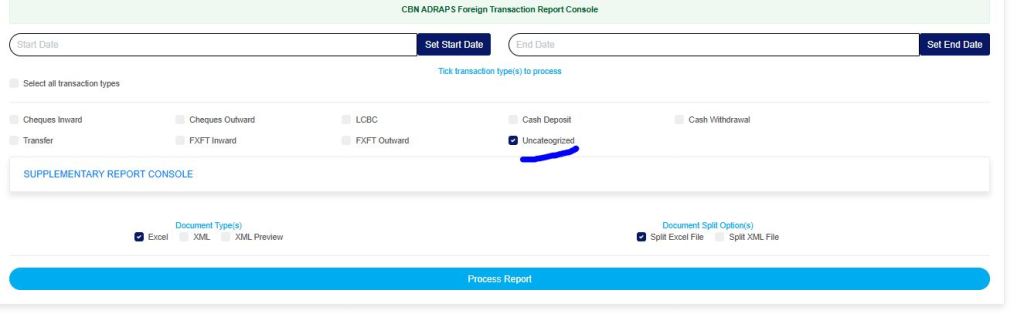 You can also select the “Uncategorized” option, which will give you all reportable transactions (irrespective of the transaction type) for the specified date range, as shown in Fig. 3.4j below. This type of report does not include external customer data.