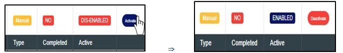 - Clicking on ACTIVATE turns the status bar of the report to blue with an ‘ENABLED’ inscription, while clicking on DEACTIVATE will turn the status bar back to red with a ‘DIS-ENABLED’ inscription. See fig. 5.4v and fig. 5.4w to see the result of activating the report for an example, as well as Fig. 5.4x and Fig. 5.4y to know the result of deactivating the report for another example.
