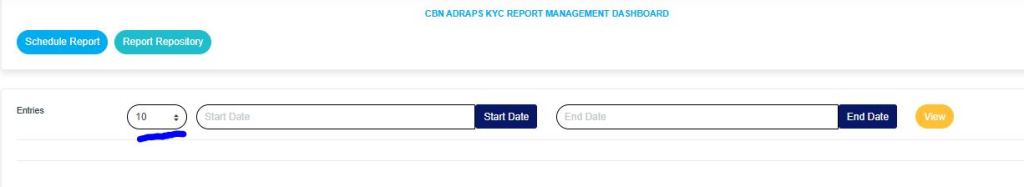 - This will display a page as in Fig. 5.4d below. On this page, you can search for KYC reports by specifying the periods in which they were scheduled.