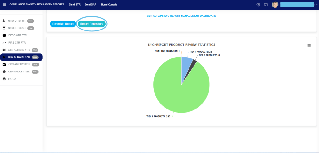 Step 1: From the app dashboard, click on “REGULATORY REPORTS” as in Fig. 5.4a below.