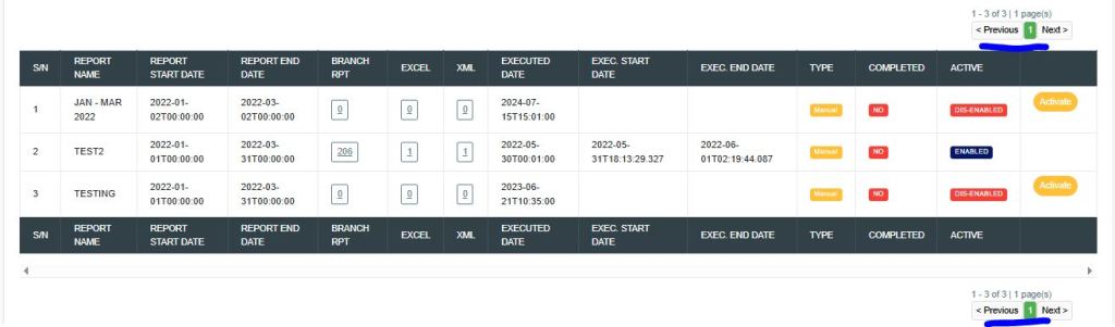 - Back to fig. 5.4i – KYC Repository list page: At the end of each report row, the software indicates whether the report processing is enabled or disabled under the ‘ACTIVE’ column.