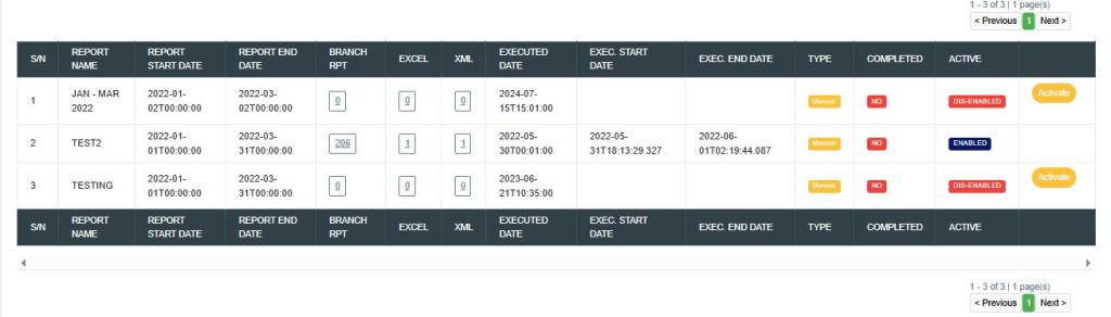 STEP 6: Click on Activate to enable the processing of the report or Deactivate to disable the processing of the report.