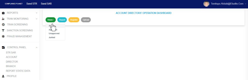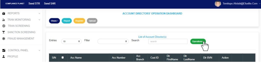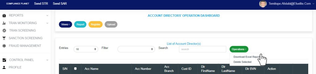 NOTE only person(s) profiled as deputy supreme Admin and assigned right(s) to “view” and “download excel” account director records will be able to carry out this operation.