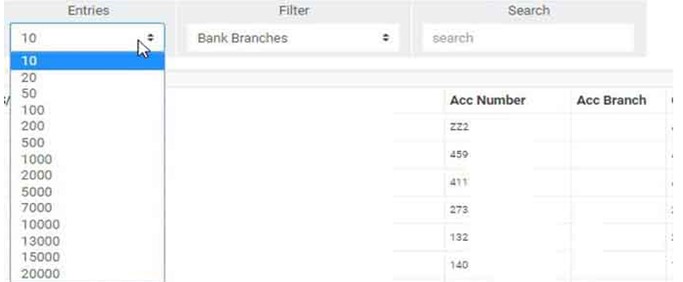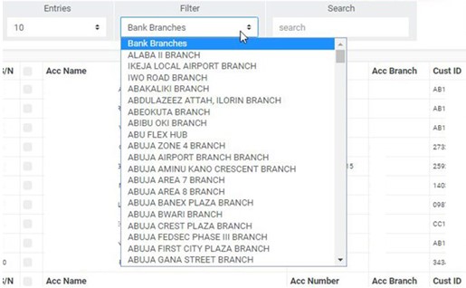 ➔ To see list of corporate account directors of one of the branches, select branch name from the filter box as in fig. 10.4d. The default account director list is always for all branches of the institution. The list will be generated as soon as you make your selection.
