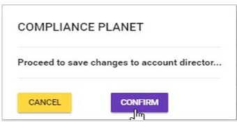 - This will display a confirmation console to confirm you want to make the changes. Click on ‘CONFIRM’ as shown in fig. 10.4j to proceed or ‘CANCEL’ to go back to the ‘Edit Corporate Account Director’ console.