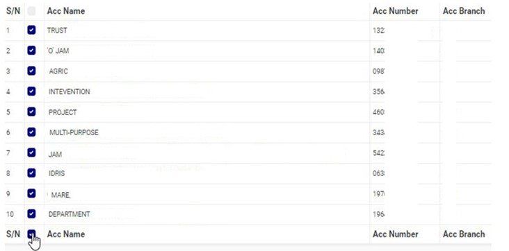 - To select or deselect all the accounts, click on the checkbox on the table title bar, that is, the checkbox between ‘S/N’ and ‘ACCOUNT NAME’. See fig. 10.4q for an example.