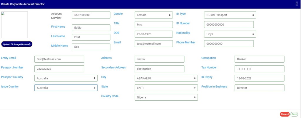 - This displays the ‘Create Corporate Account Director’ console as in fig. 10.3b below.