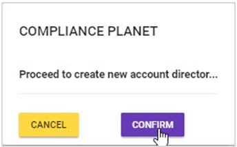 A confirmation console as in fig. 10.3d will be displayed to confirm your request. Click on ‘CONFIRM’ to proceed to save new account director information or ‘CANCEL’ to go back to console.