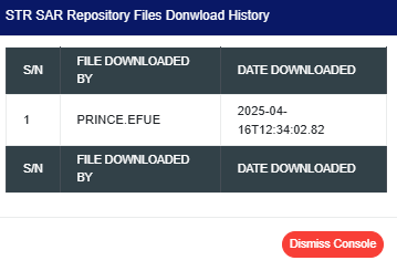 ➔ by clicking the “DOWNLOAD HISTORY” button will display a console, as shown in the image below. To close the console after viewing it, click “DISMISS CONSOLE”, as illustrated in the example.