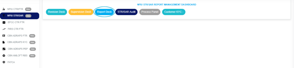 Click ‘NFIU STR/SAR’ on the drop-down list and display the STR/SAR page as displayed in the image below.