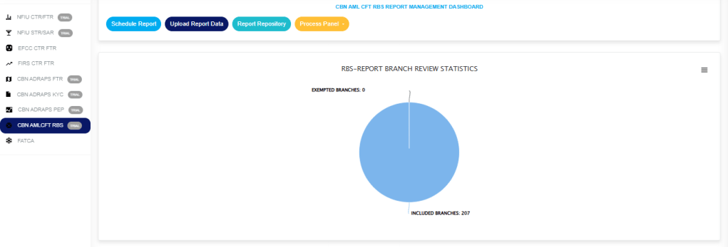 Click “CBN AML/CFT RBS” on the drop-down list and display the RBS REPORT BRANCH REVIEW STATISTICS Page as displayed in the image below.