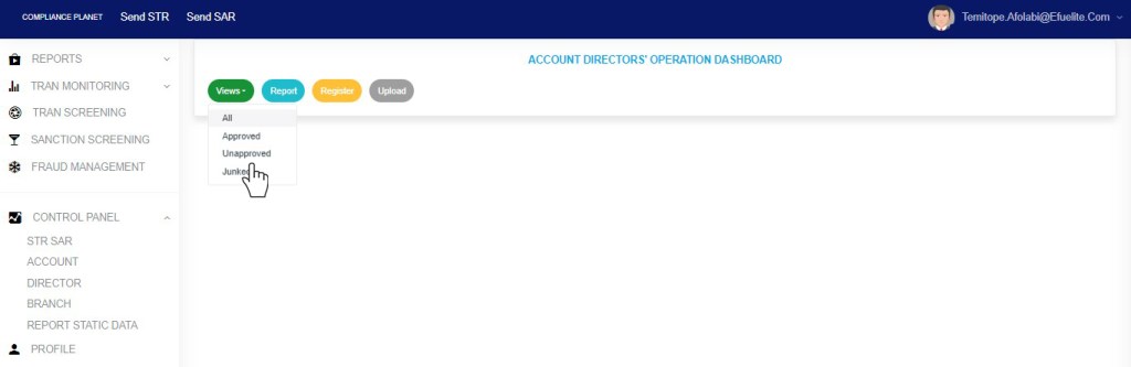 The ‘JUNK LIST’ page provides a list of all corporate account directors information, approved or unapproved, that were deleted from the general list, approved list or unapproved list.