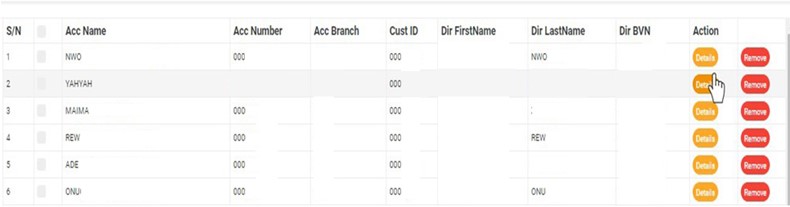 - Each corporate account director information on the junk list has two (2) action buttons; the ‘DETAILS’ button and the ‘REMOVE’ button. These buttons are used for the treatment of the respective director information on the list. Here is how to make use of the action buttons.
