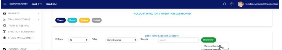 - By clicking on ‘Remove Selected’, all the selected director information will be removed from the junk list, and added back to the account directors’ general list. Director information that has been approved previously will also be added back to the approved list, while unapproved information will be added to the unapproved list. Here is how to make a bulk removal.