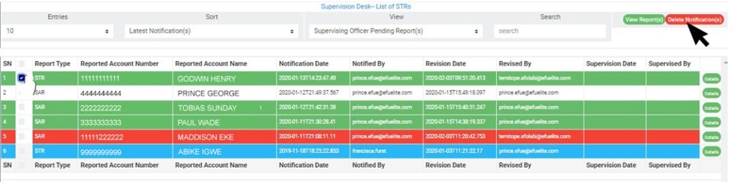STEP 1: Click on the checkbox beside the report type to select the Notifications you want to delete. See an example in Fig 6.4w below