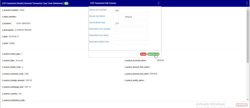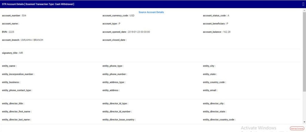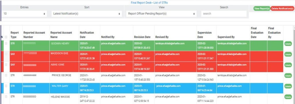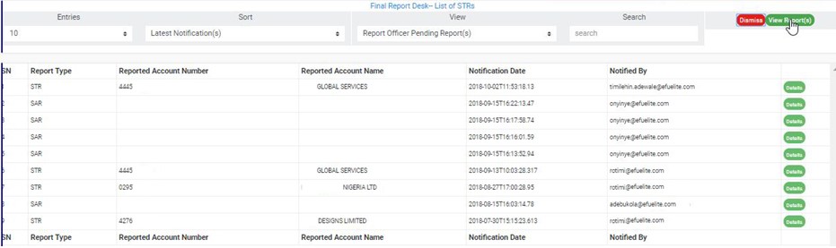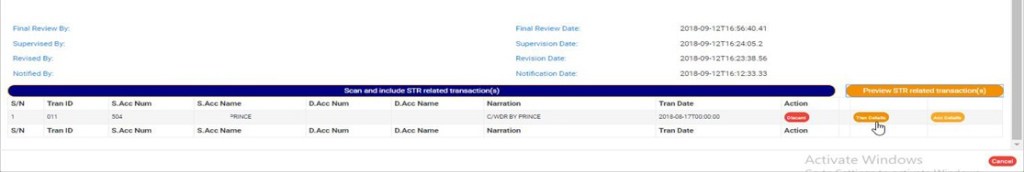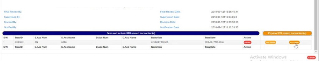 - As seen in fig. 6.5v above, the table comes with features to delete the transaction from the STR, see the details of the transaction and details of the account involved.