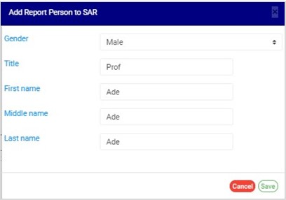 - The software will add the new information you have added right under the ‘ADD REPORT PERSONS TO SAR’ button just as in fig. 6.5al below. Click on ‘ADD REPORT PERSONS TO SAR’ to add more persons.
