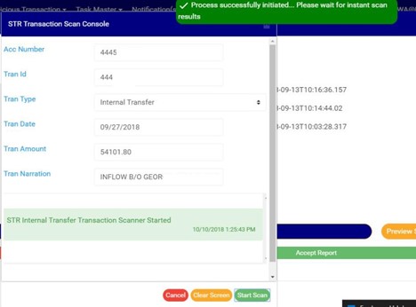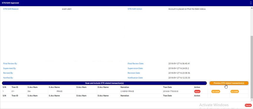 - Scanning and adding details of transactions related to a suspicious transaction in the report to be generated.