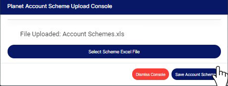 - This will display a ‘Planet Account Scheme Upload’ console as in fig. 12.2ab.