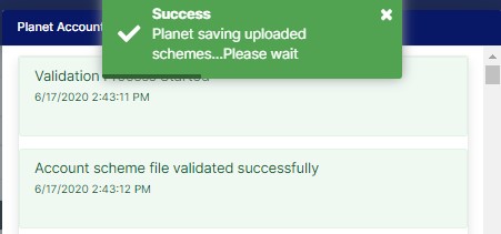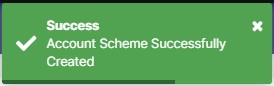 - If you proceed, a notification as in fig. 12.2z will be displayed at the top of the page when the account scheme has been successfully created. The new scheme would be added to the list of Account schemes on the planet right away.
