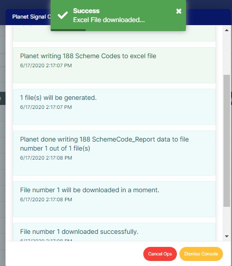 - If you proceed with the download, the signal console will show ongoing processes as in fig 12.2s below, and when download is complete, a notification will be displayed at the top of the page.