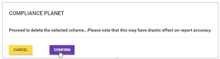 - This displays a confirmation console to confirm your request to delete that particular account scheme as in fig. 12.2m Click on ‘CONFIRM’ to proceed.