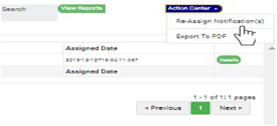 STEP 4: Click on “Re-Assign Notification” from the action center dropdown. See an example in Fig 6.3ai below