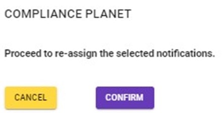 STEP 8: Clicking on “proceed to re-assign task” will display a console to confirm your selected action. See an example in Fig 6.3am below. To proceed, click on CONFIRM and to dismiss the operation, click on CANCEL.