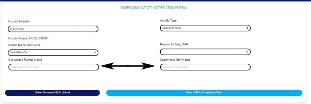 - After Inputting the account number, the software will auto-fill the branch name and also display the name attached to the account when you click on any part of the page(Outside the checkbox). See Fig 2.2d for an example