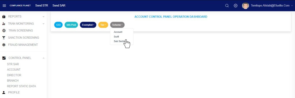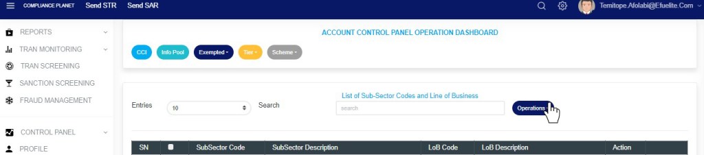 - This will display the ACCOUNT CONTROL PANEL OPERATIONS dashboard as in Fig 15.2c below