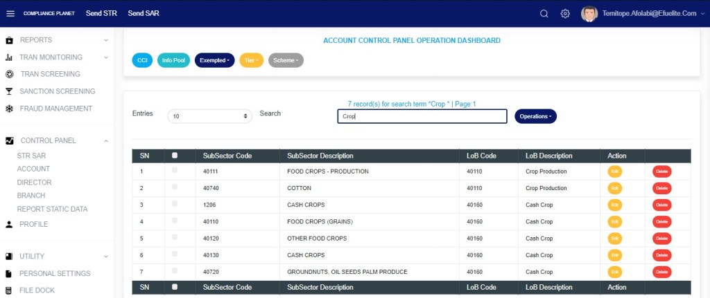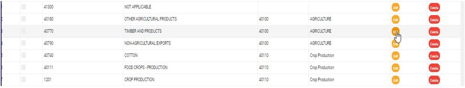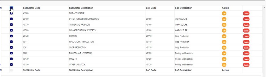 - Each sub-sector scheme entry has two (2) action buttons; ‘Edit’ button and ‘Delete’ button. These buttons are placed at the end of each row. Also, at the top of the page are other buttons to carry out bulk operations. These operations are explained below.