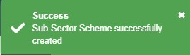 STEP 4: Click ‘CONFIRM’ to proceed with the creation of the new sub-sector scheme or ‘CANCEL’ to discontinue. If you proceed, a notification as in fig. 15.5g will be displayed at the top of the page when the new sub-sector scheme has been successfully created.