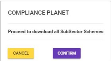 This refers to the download of an excel file filled with all the sub-sector schemes saved on the compliance planet. Here is how to do this.