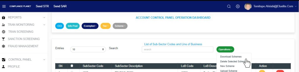 The operations pertaining to SUB-SECTOR SCHEME on the Compliance Planet are: