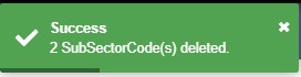 - If you proceed to delete the sub-sector, a notification as in fig. 15.4c will be displayed at the top of the page when the delete operation is done.