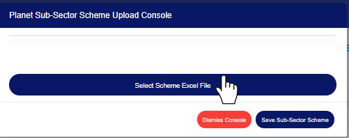 STEP 2: Click ‘SELECT SCHEME EXCEL FILE’ as in fig. 15.8c to choose the excel file filled with the details of the new sub-sector schemes to be uploaded on the planet.