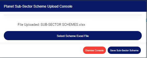 - To add more than one new account scheme on the software; you need to upload an excel file filled with the details of the new sub-sector schemes according to the software’s specification for uploading new sub-sector schemes. This process is described below.