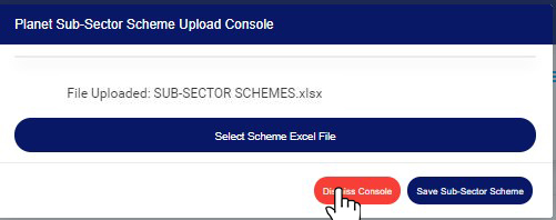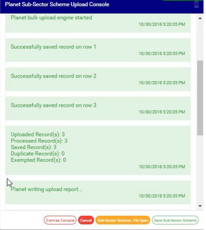 - This displays a ‘Planet Sub-Sector Scheme Upload’ console as in fig. 15.8b