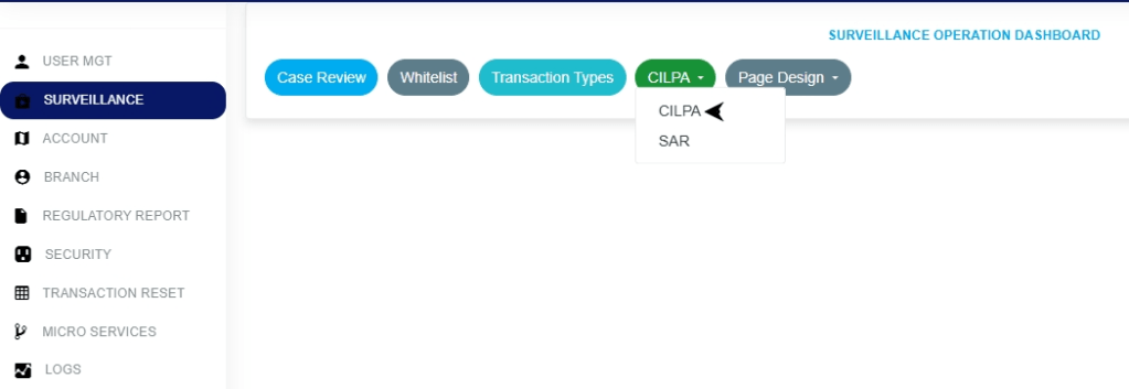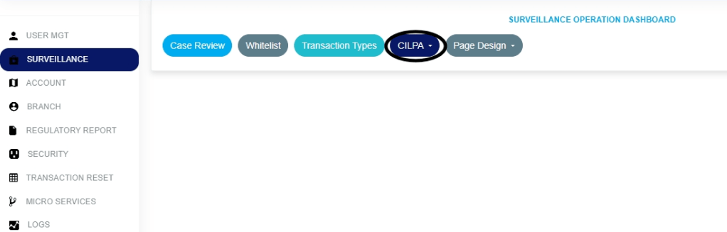 STEP 2: Select “SURVEILLANCE” on the drop-down list and click on “CILPA”. See an example in Fig. 21.1b below.