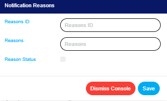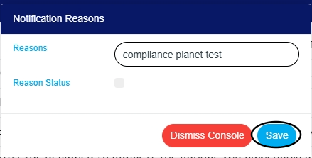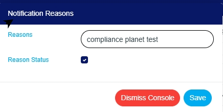 - Clicking the ‘edit’ button will display a console titled ‘Notifications Reasons’ as shown in Fig. 21.1f below.
