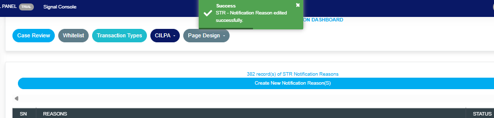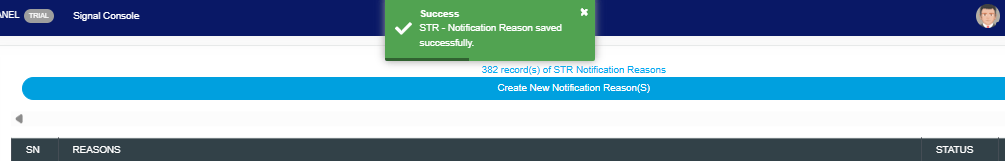 This refers to creating a new STR notification reason. This notification reason will be added to the list of available ‘reason’ options when sending a new STR notification on the Compliance Planet software (See section 6.2.1 for sending an STR notification).