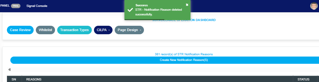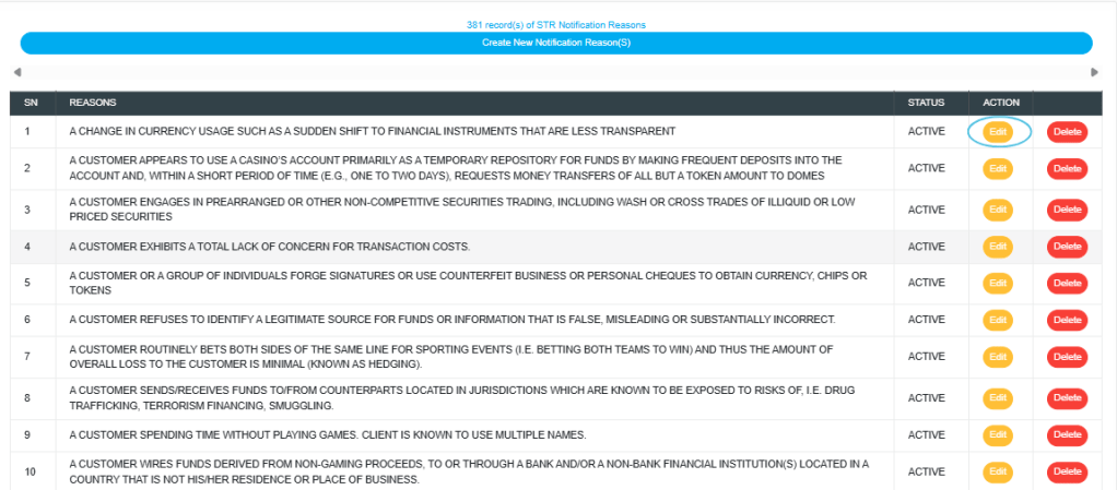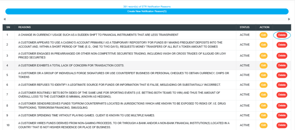 STEP 1: Click on the ‘delete’ button of the STR notification reason, as in Fig. 21.1m.