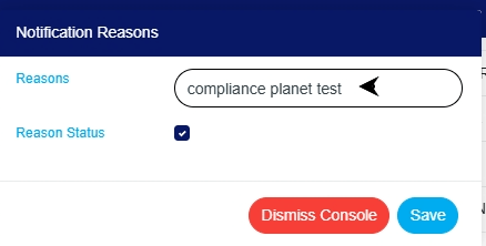 STEP 2: Click on the ‘reason text’box to change the Notification reason description. See an example in Fig. 21.1g below.