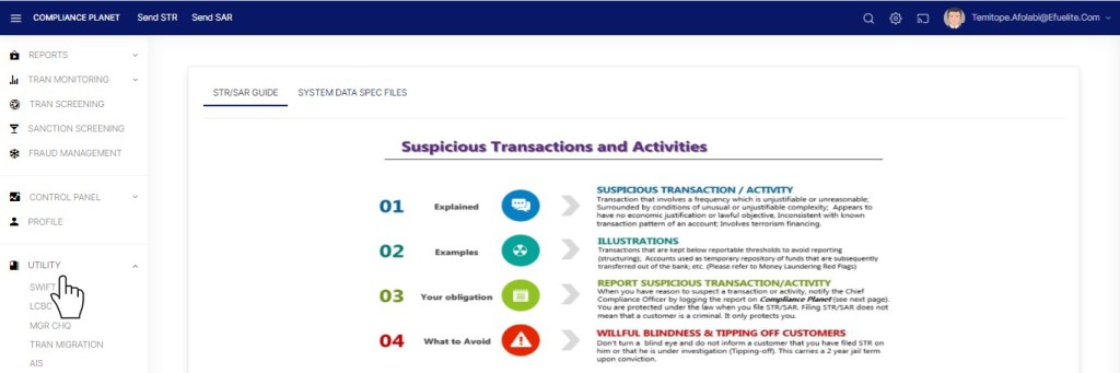 - An excel file with details of the SWIFT transaction will be downloaded when the process is complete. The details on the downloaded excel file can be edited and uploaded on the software to update multiple SWIFT FXFT transaction details at once. However, the ‘Compliance tran Id’ for each record on the excel file must not be tampered with for the upload to be successful.