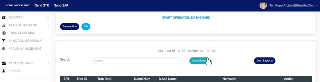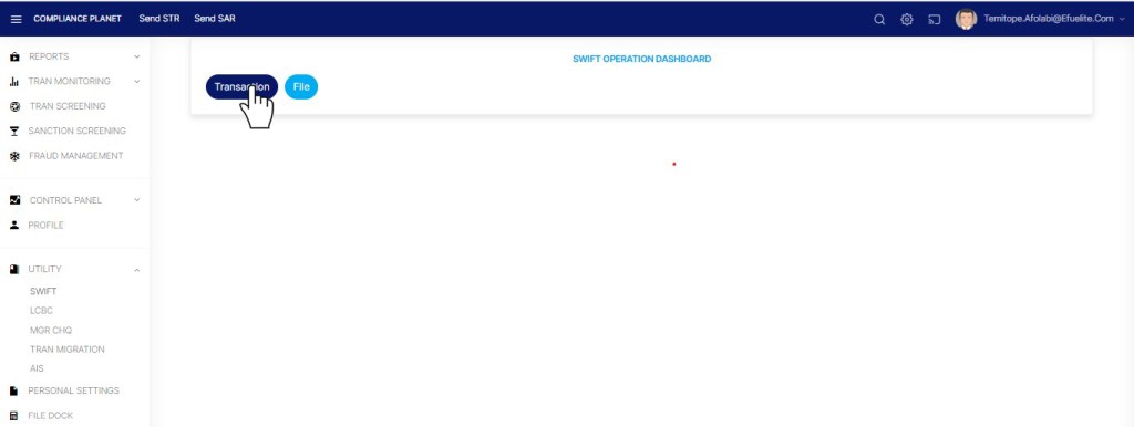STEP1: Click “Transaction” On the SWIFT OPERATIONS DASHBOARD as shown in fig 31.2a below