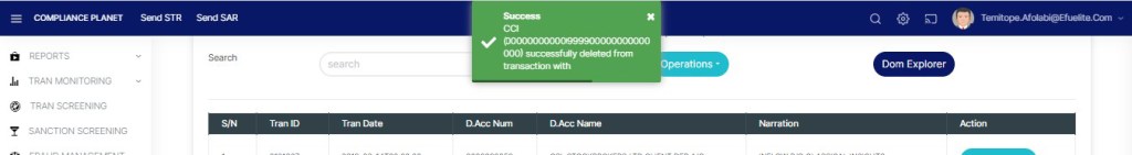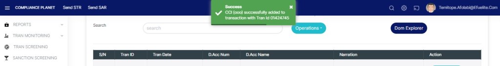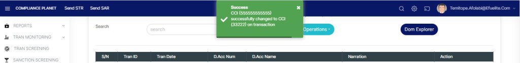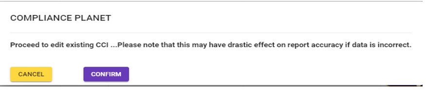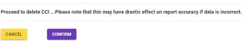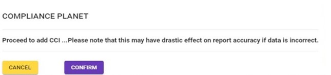 - A notification will be displayed at the top of the page when new CCI is saved successfully. See Fig 31.2w below