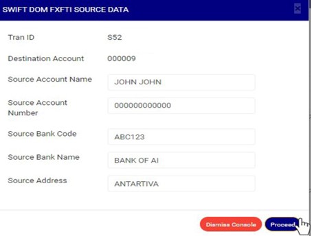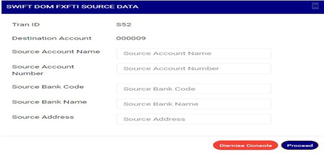 Note: Only person(s) assigned right to ‘view SWIFT DOM transactions’ and ‘Screen Edit SWIFT DOM transactions’ will be able to add Source Account data